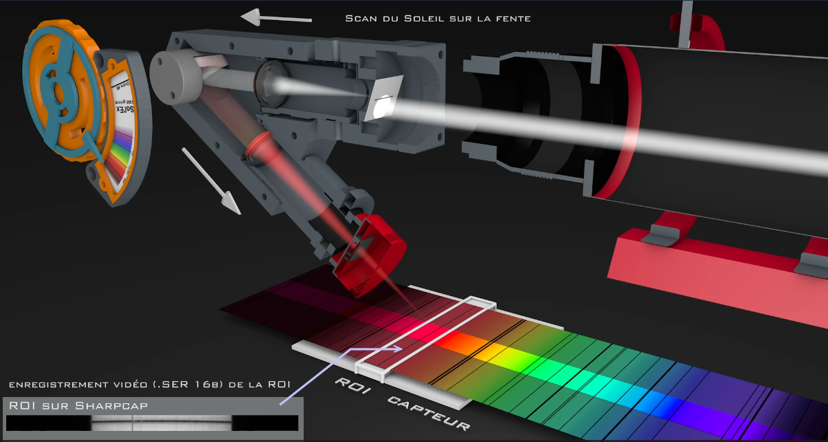 Le Sol'Ex est aussi un moyen de faire de l'imagerie en balayant (vitesse accélérée de la monture) l'objet étudié, comme par exemple en imagerie Solaire. Dans ce cas, le soleil va se déplacer devant la fente et une vidéo du spectre obtenu sera faite avec une caméra rapide. On prendra soin de ne sélectionner qu'une zone limitée du spectre pour éviter d'avoir une video trop volumineuse.