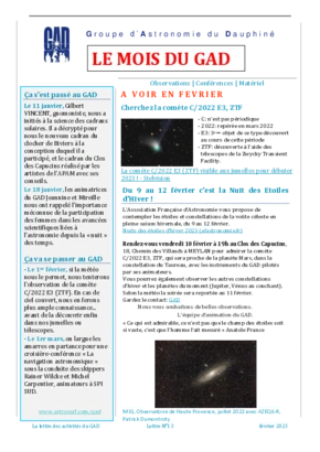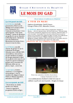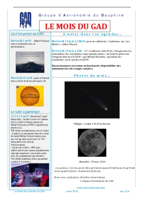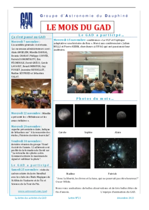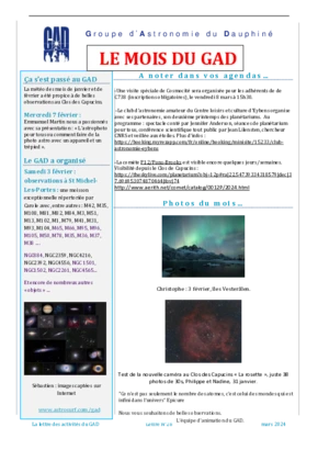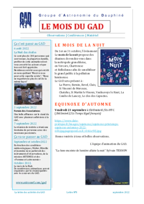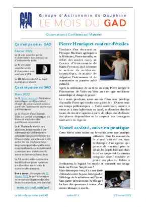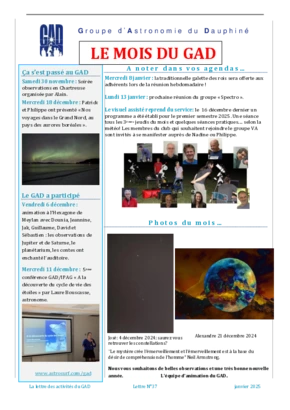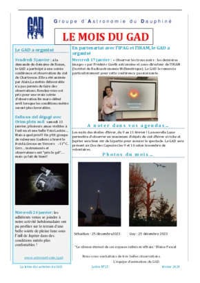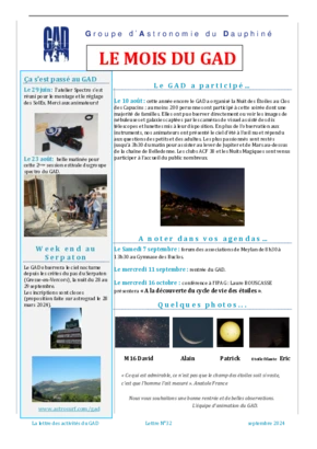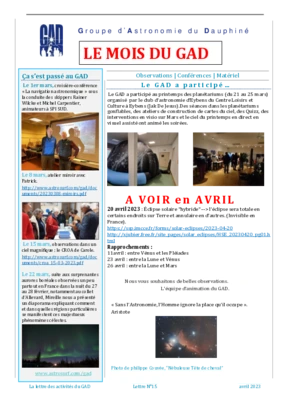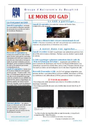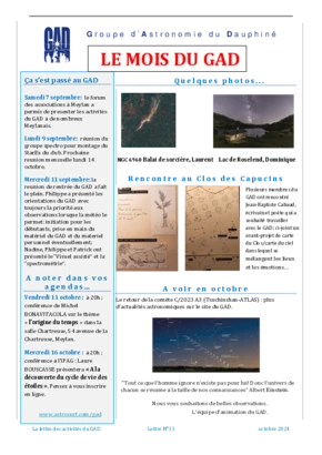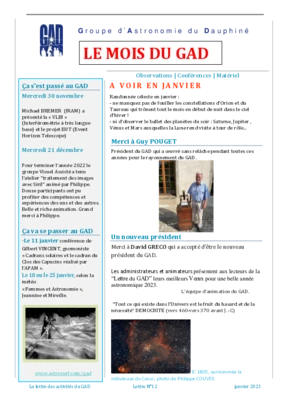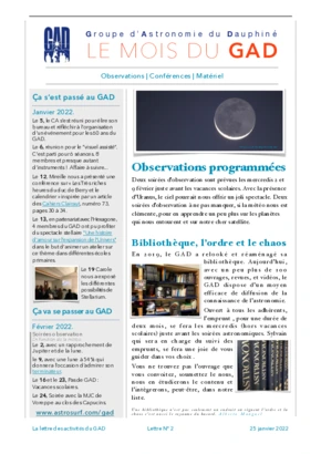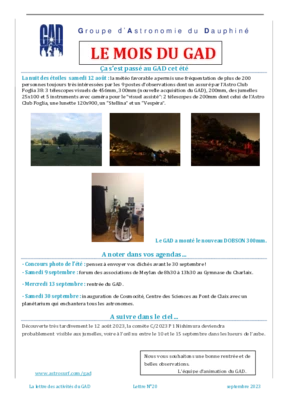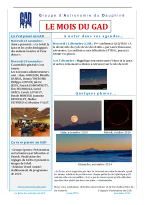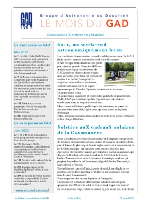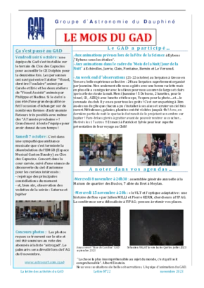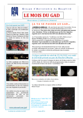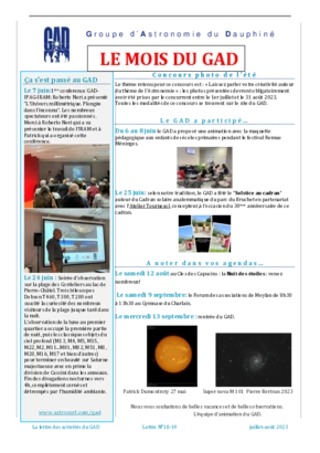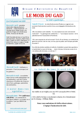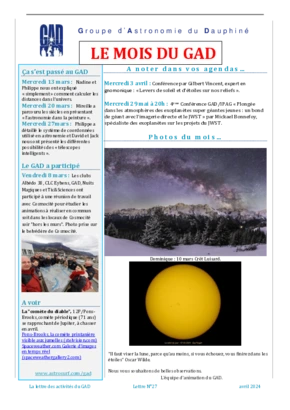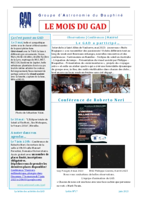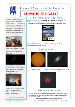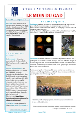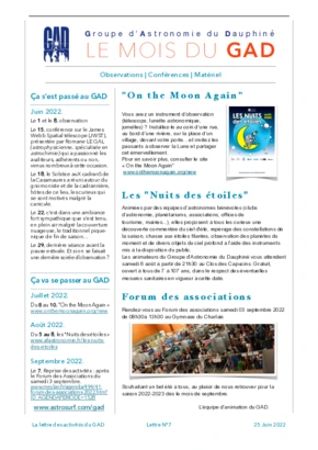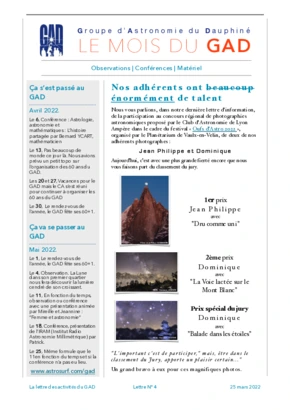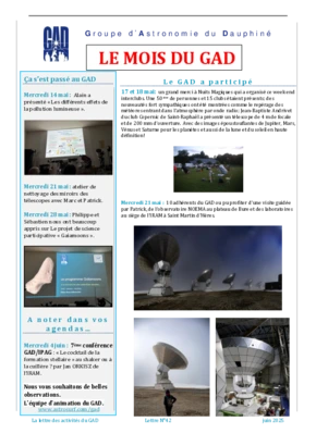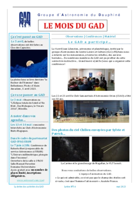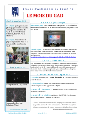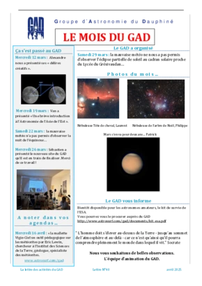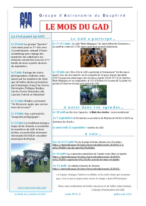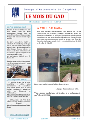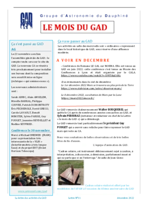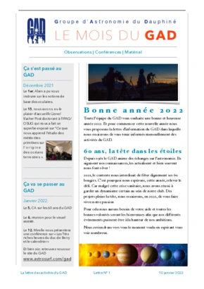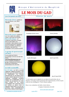 Le GAD rédige mensuellement une lettre résumant les activités du mois. Vous trouverez ici celles des mois et années passés.