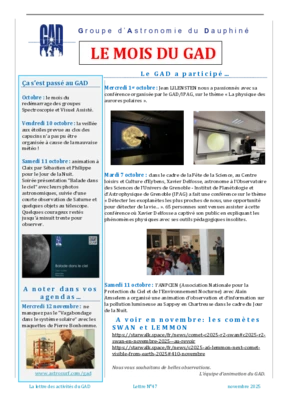 Le GAD rédige mensuellement une lettre résumant les activités du mois. Vous trouverez ici celles des mois et années passés.